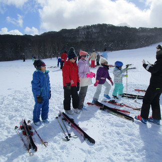 裏磐梯スキー場に到着、スキーレベルごとの班に分かれて講習を開始しました。